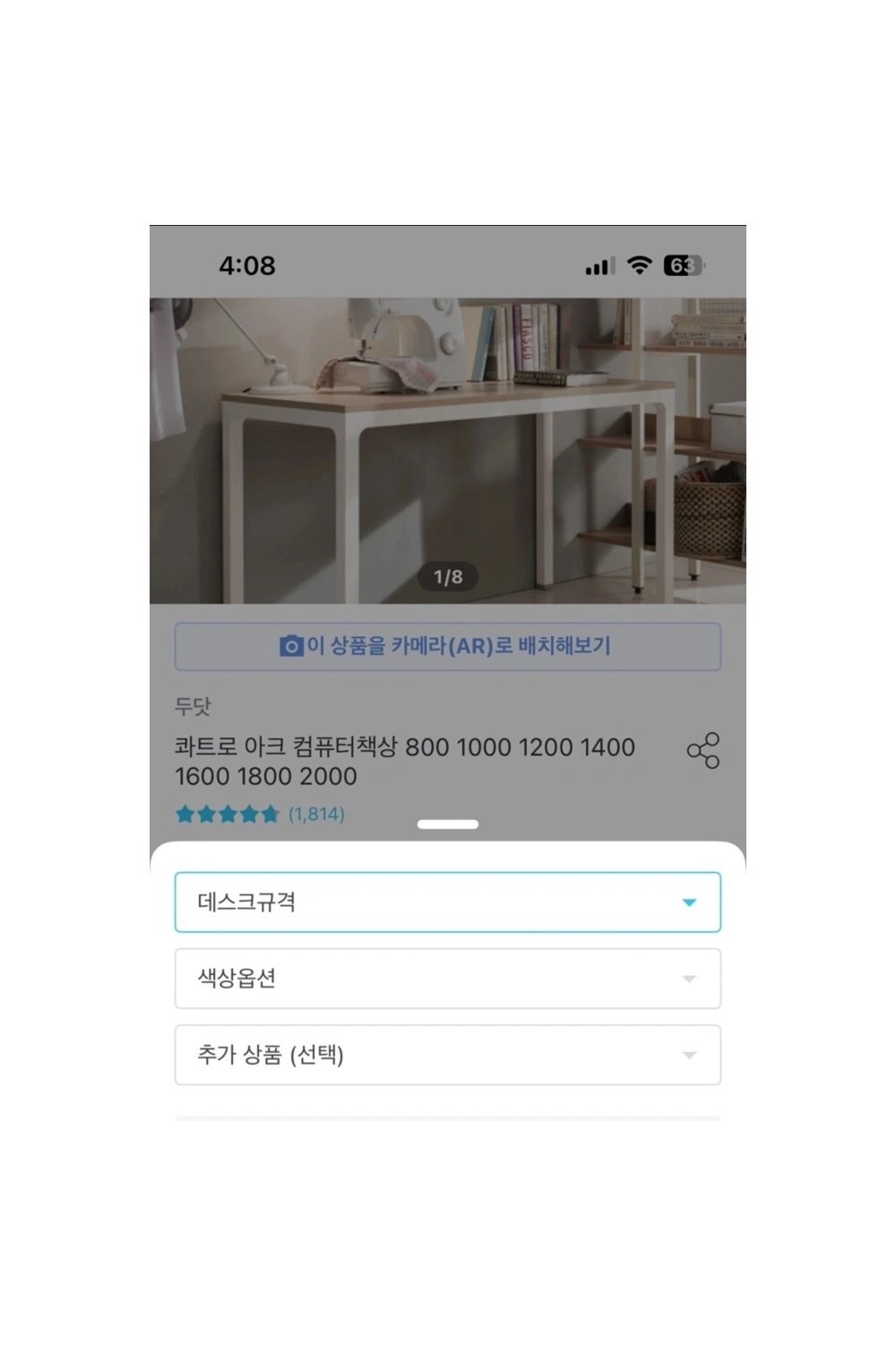 오늘의집에서 144,000에 구매한 책상입니다. 옵션에서 1200*800하면 14만원대로 떠요!