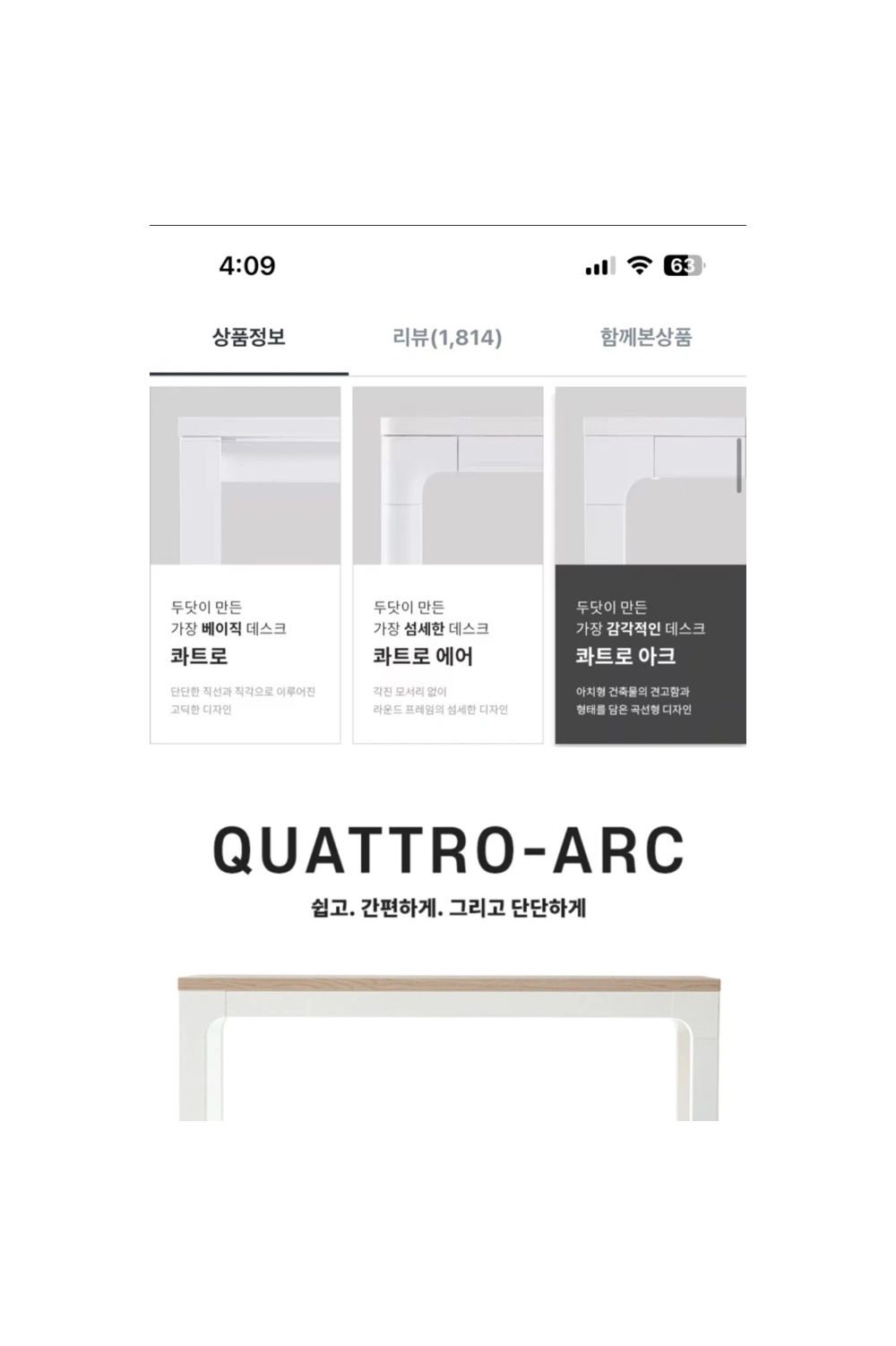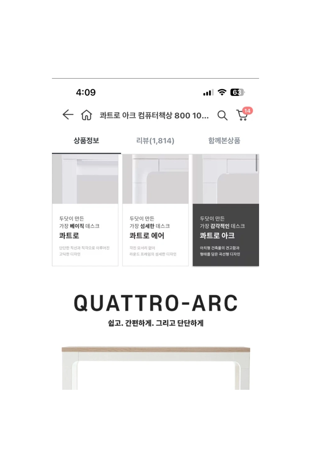 두닷 콰트로 아크 책상 1200*800 올흰 원가144,