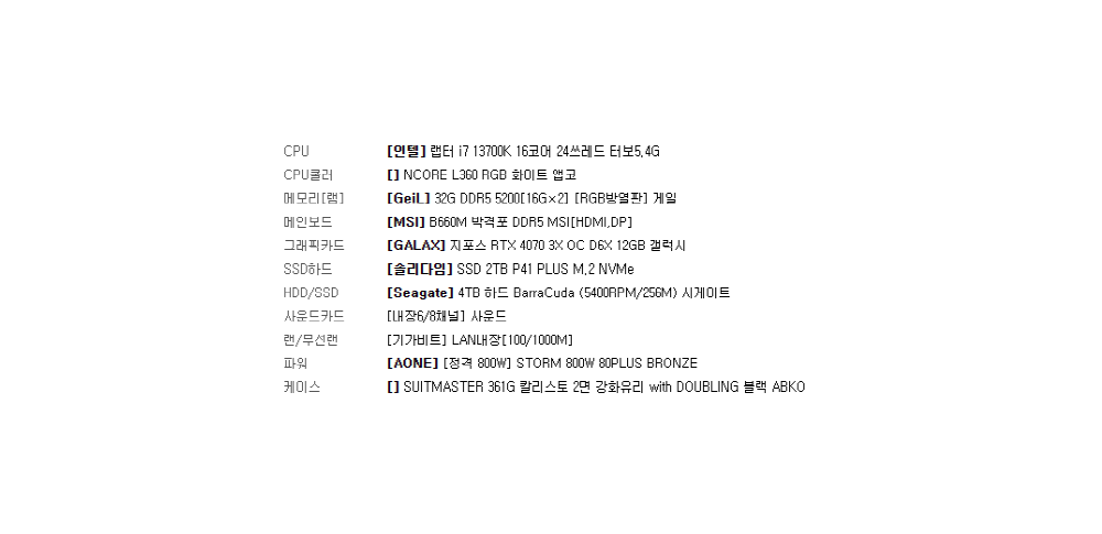 [인텔] 랩터 i7. 13700K. 16코어.